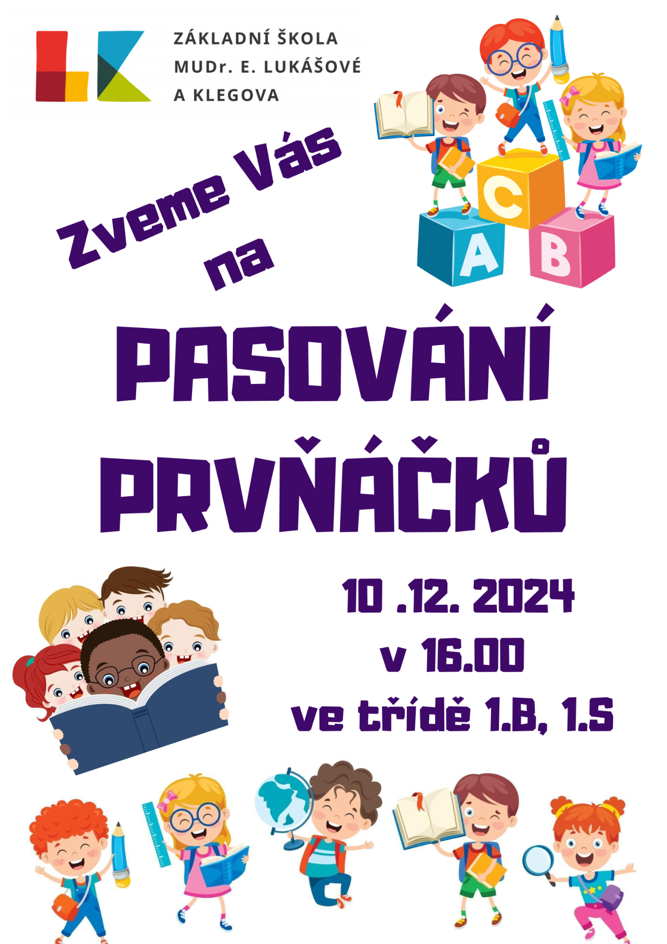 V úterý 10. 12. 2024 se koná v 16 h Pasování prvňáčků na čtenáře. Odpolední akce pro rodiče, prarodiče, děti, kde děti předvedou, co už se naučily. Akce proběhne v naší třídě, bude trvat cca 1h. Děti přiveďte ke škole v 15.45 (ty, co budou v družině, si vyzvednu tam), ať máme 15 min na přípravu. Děti budou slavnostně pasovány na čtenáře, dostanou knihu a sladkou odměnu.